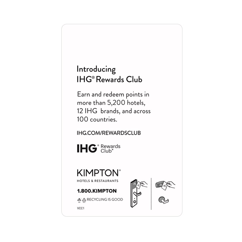 IHG Kimpton 1K RFID Key Cards compatible with Saflok, DormaKaba, Ilco, Onity, Miwa & Securelox RFID lock systems. These key cards will not work with any other RFID Locking Systems